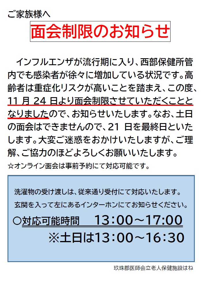 - 2025/10/8 ご面会制限緩和のお知らせ。